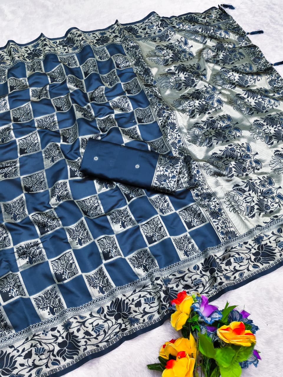 AJ-MADHURAM KOTA LITCHI SILK WITH CHAMPION JAREE WITH BEAUTIFUL BOX BODY DESIGN WITH RICH PALLU AND TASSELS ATTACHED