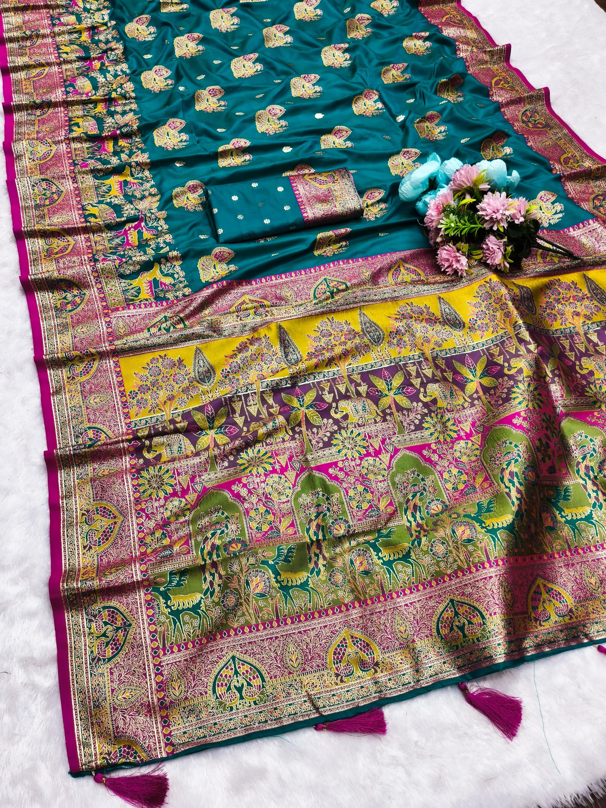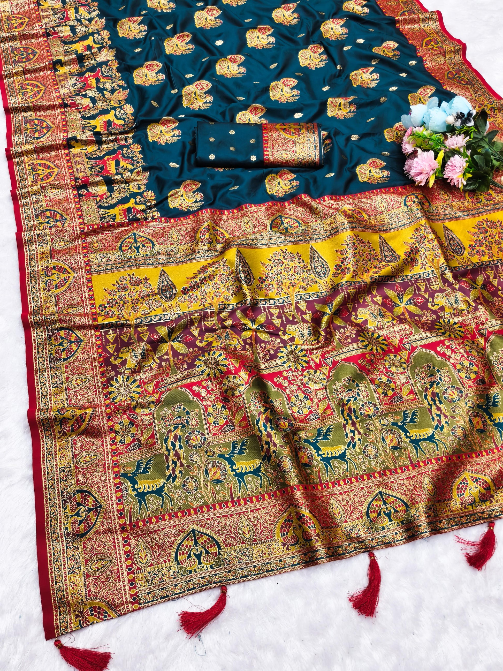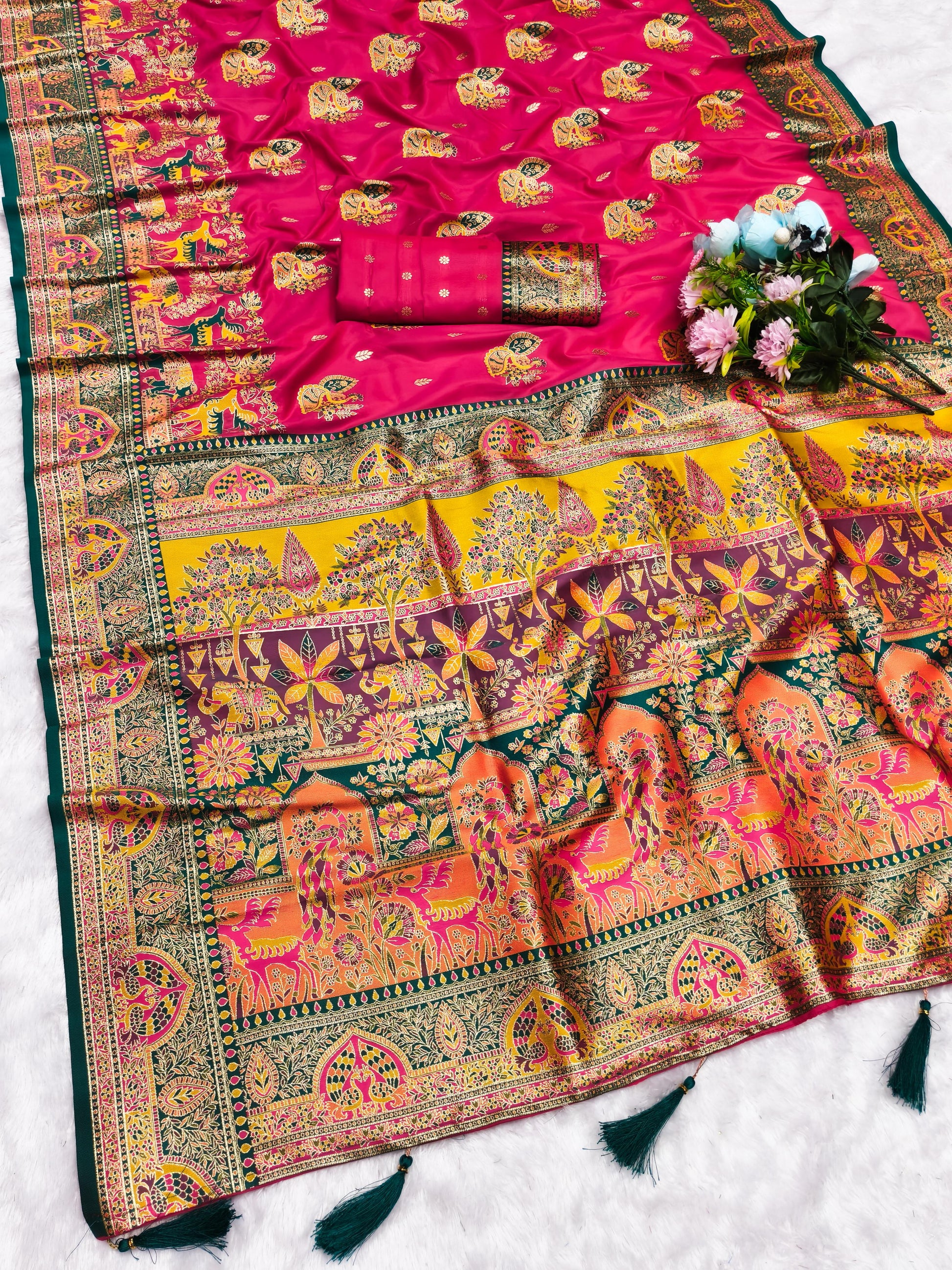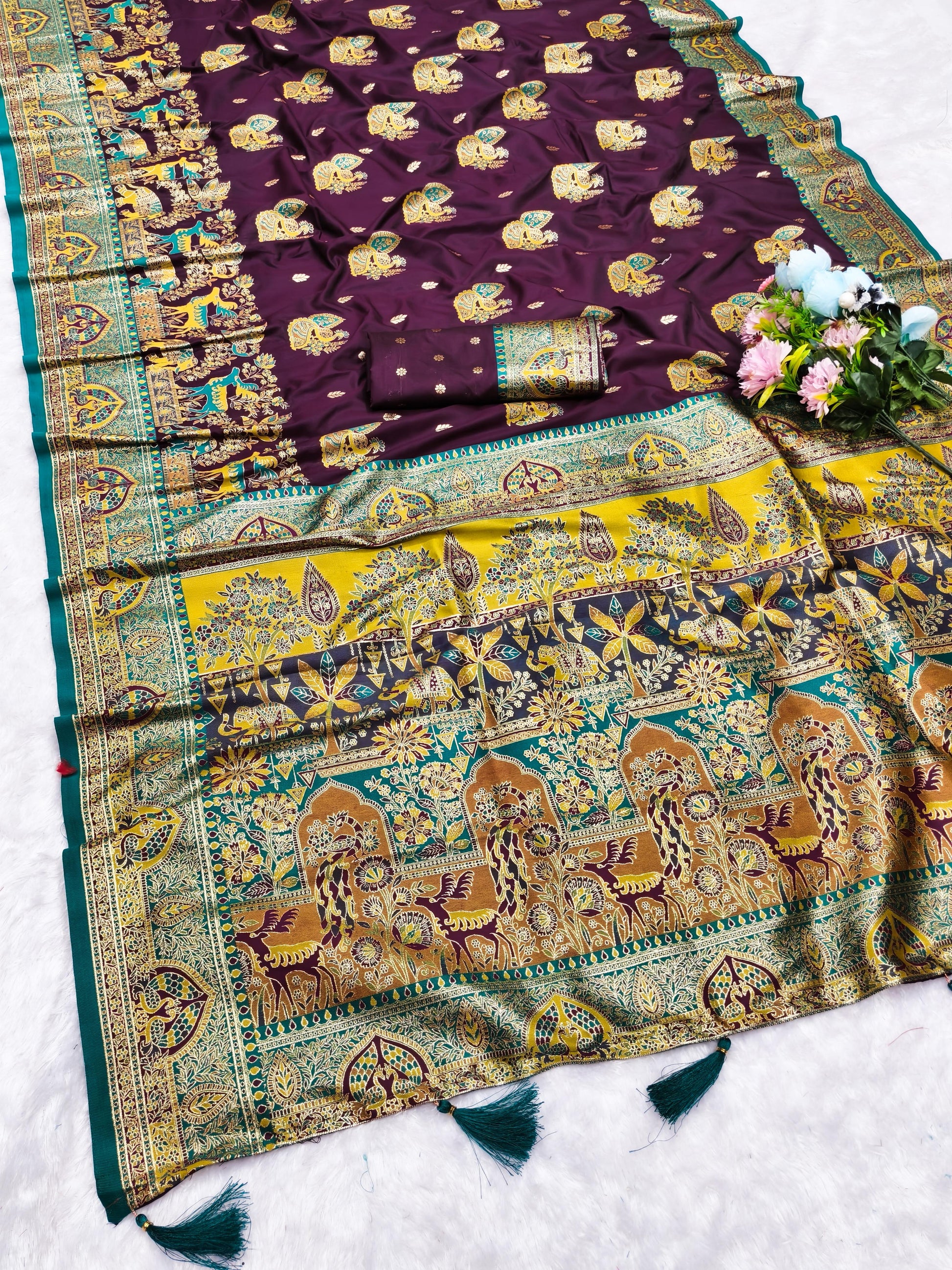 AJ-POSITION-HIRAN SOFT 50/600 SILK SAREE WITH POSITION STYLE WEAVING WITH HEAVY DESIGN WITH CONTRAST BODY PALLU AND BLOUSE