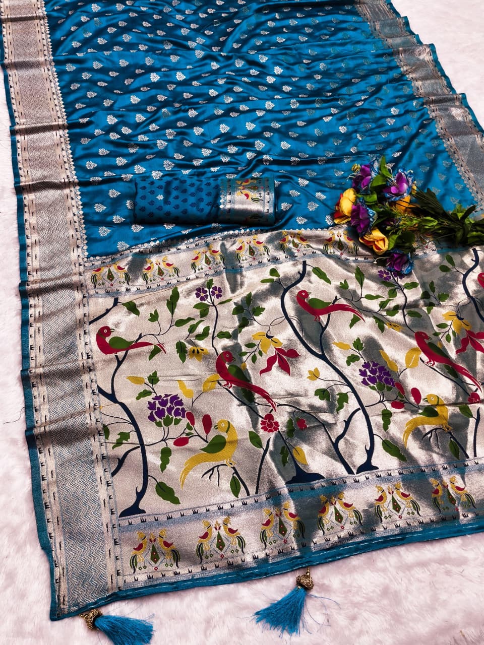AJ-SATIN-NASHIK-PAITHANI PAITHANI SATIN SILK SAREE WITH BEAUTIFUL PEACOCK DESIGN RICH PALLU WITH CYC CATONIC COLOURS WITH HEAVY TASSELS