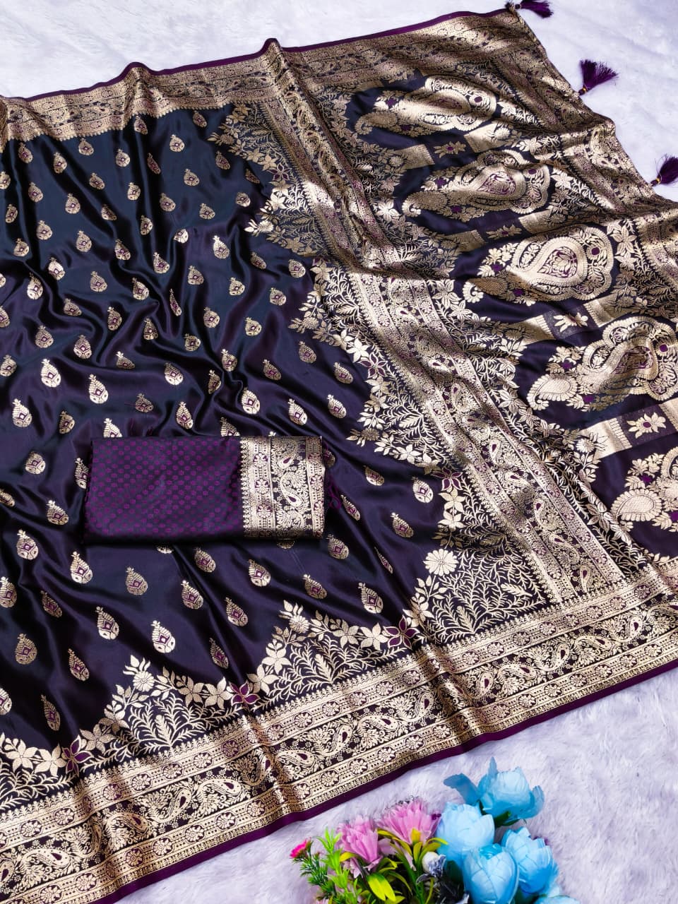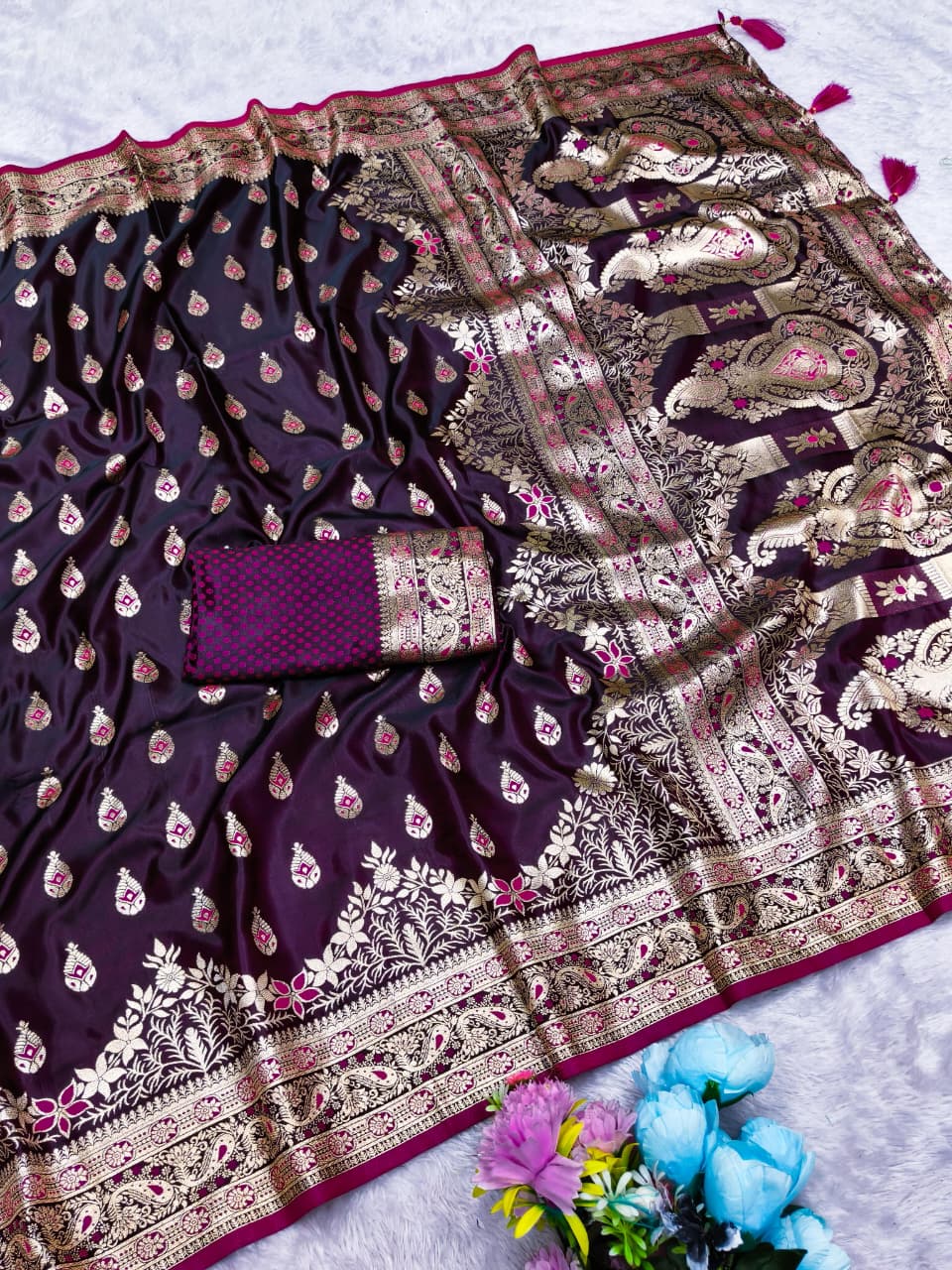 AJ-SATIN-PARAG SATIN SILK SAREE WITH RICH PALLU AND BEAUTIFUL MEENAKARI WORK WITH DARK MATCHING