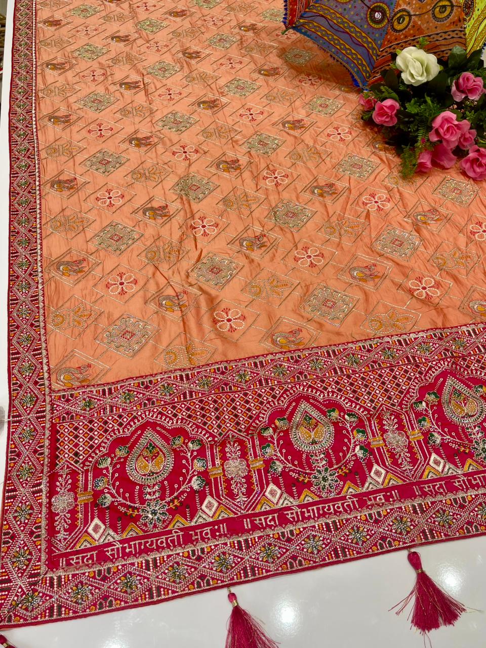BS-POSTMAN SATIN KANJIVARAM SILK GHATCHOLA GUJRATI DESIGN WITH RICH HEAVY PALLU AND BEAUTIFUL BODY DESIGN WITH CONTRAST BLOUSE WITH HEAVY WORK