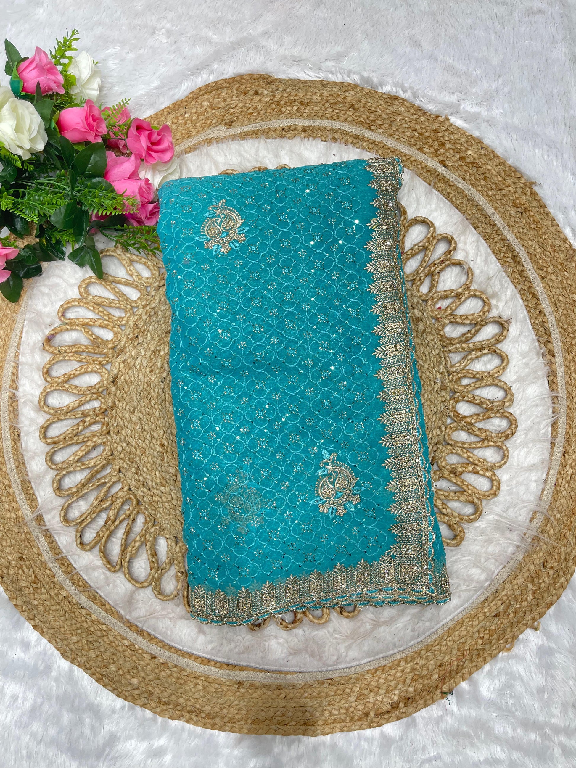 BS-RAJSHREE-2 FENDI SAREE WITH SUPER HEAVY EMBORIDERY WORK WITH BOX THREAD WORK ON BODY WITH SEQUENCE WORK