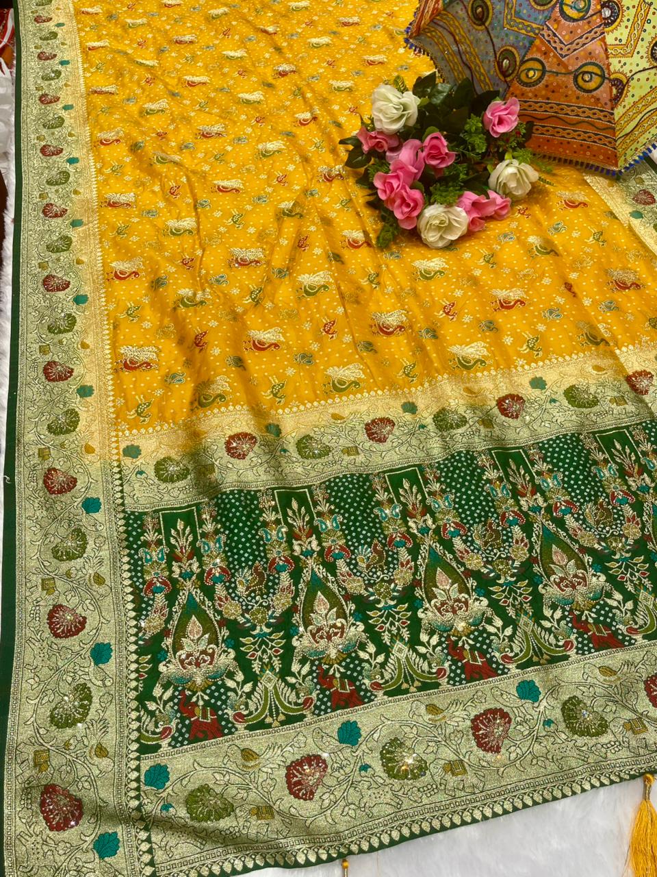 BS-TIM-TIM EUROPIAN DOLA SILK SAREE WITH 2D DYING WITH HEAVY MEENA WORK WITH JARKAN SIROSKI WORK WITH CONTRAST BORDER