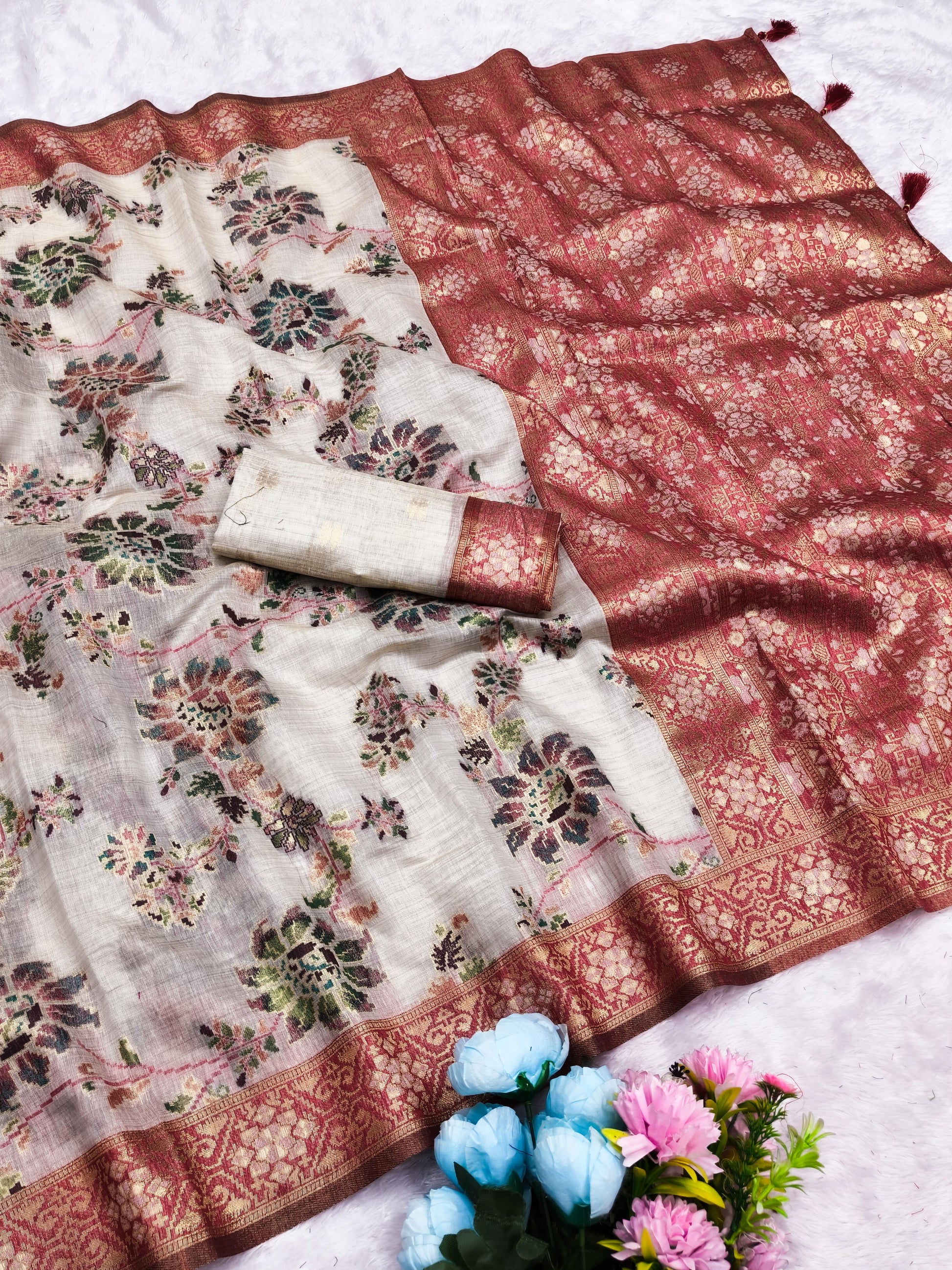 CT-RASHA COTTON SILK SAREE JHAL WEAVING DESIGN WITH CONSTAST BORDER WITH RICH PALLU WITH TASSELS