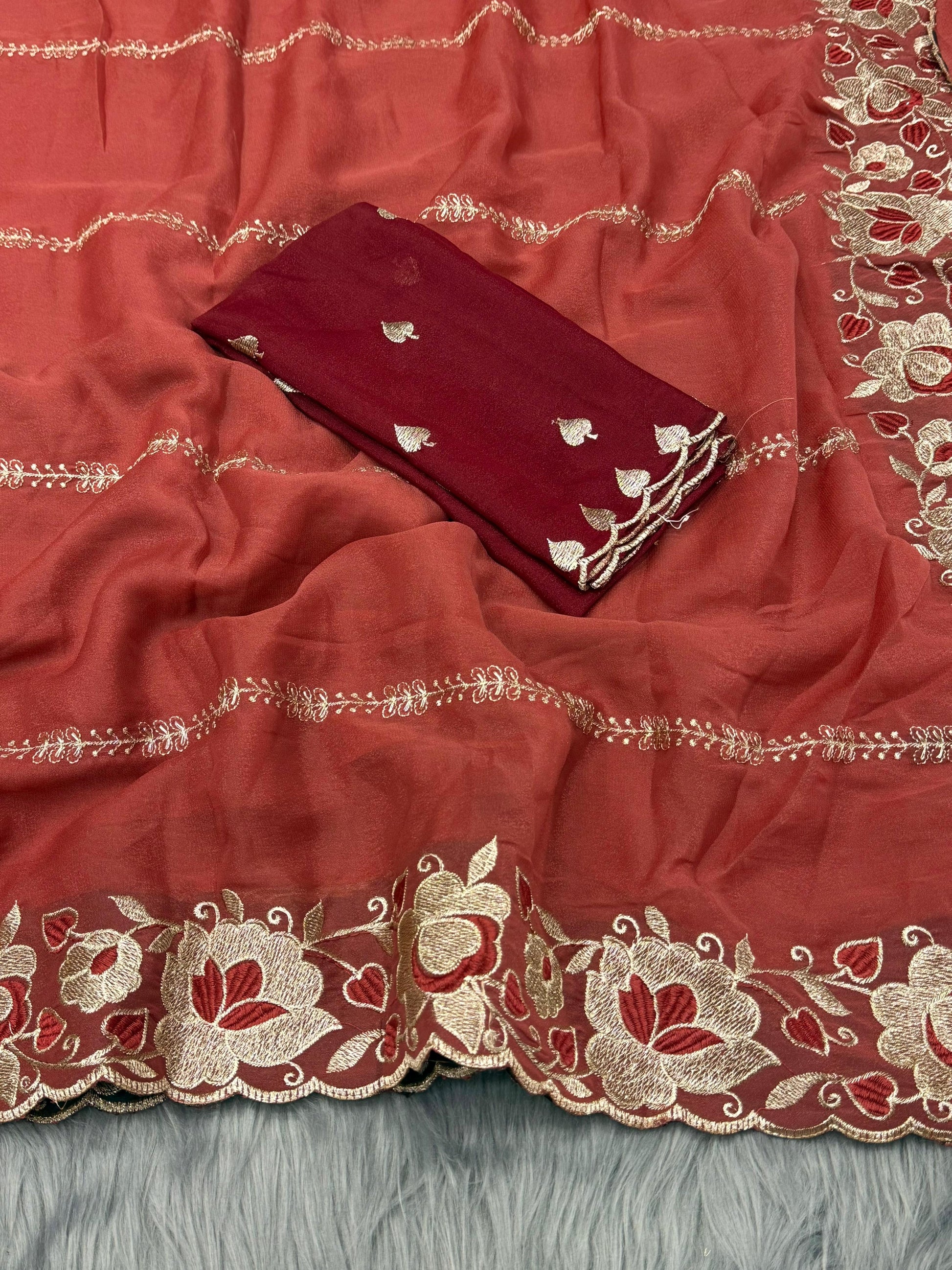 NN-2050 Star Georgette Saree with thread work and embroidery work with heavy blouse