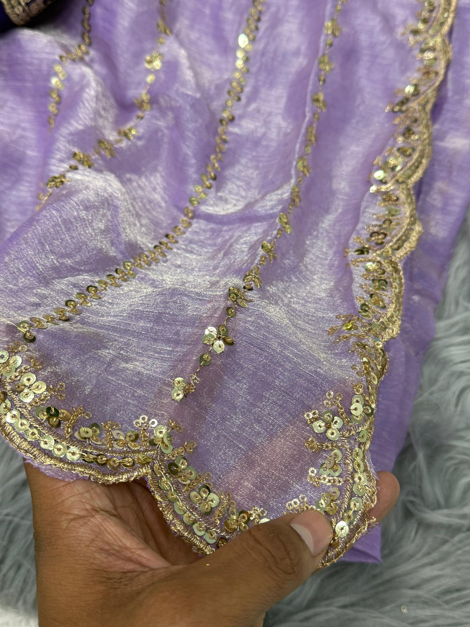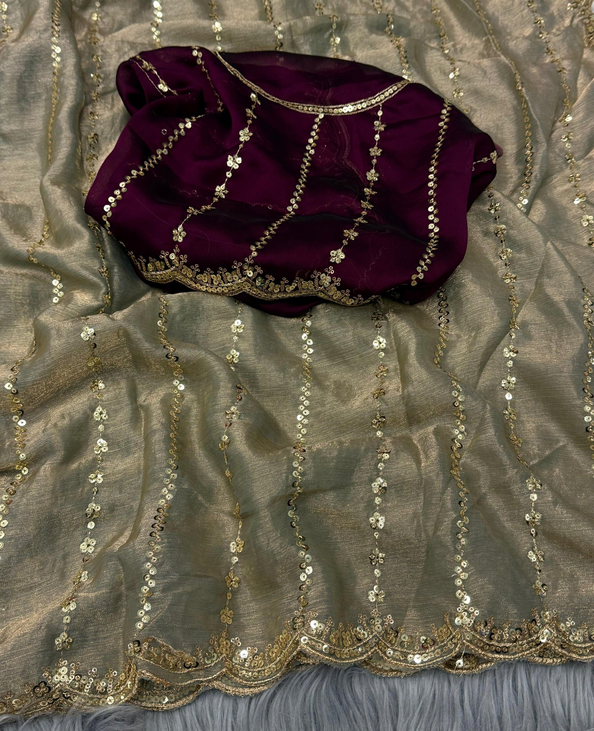 NN-2052 Pure Fandy Sattin Silk With Beautiful Sequence embroidery work with Cut work border with Paired With Fandy Sattin Heavily Worked Fancy Blouse