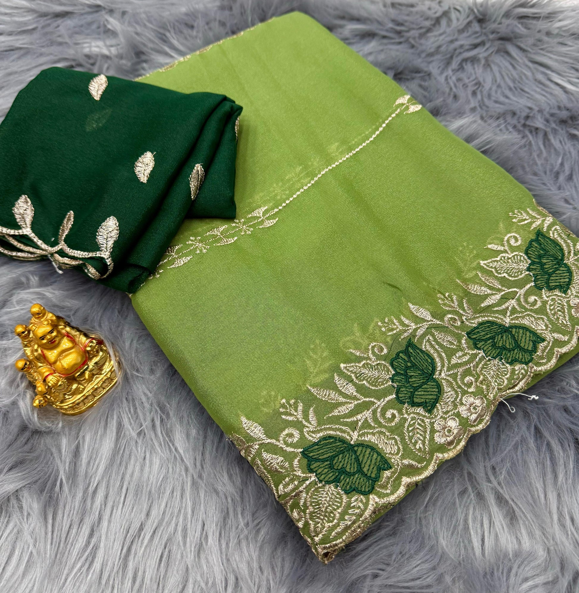 NN-2064 Star georgette fabric with c-pallu work with heavy thread work allover saree tone to tone rich embroidary blouse