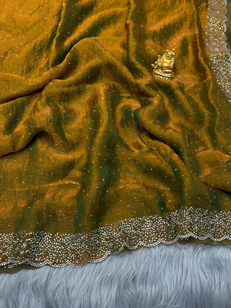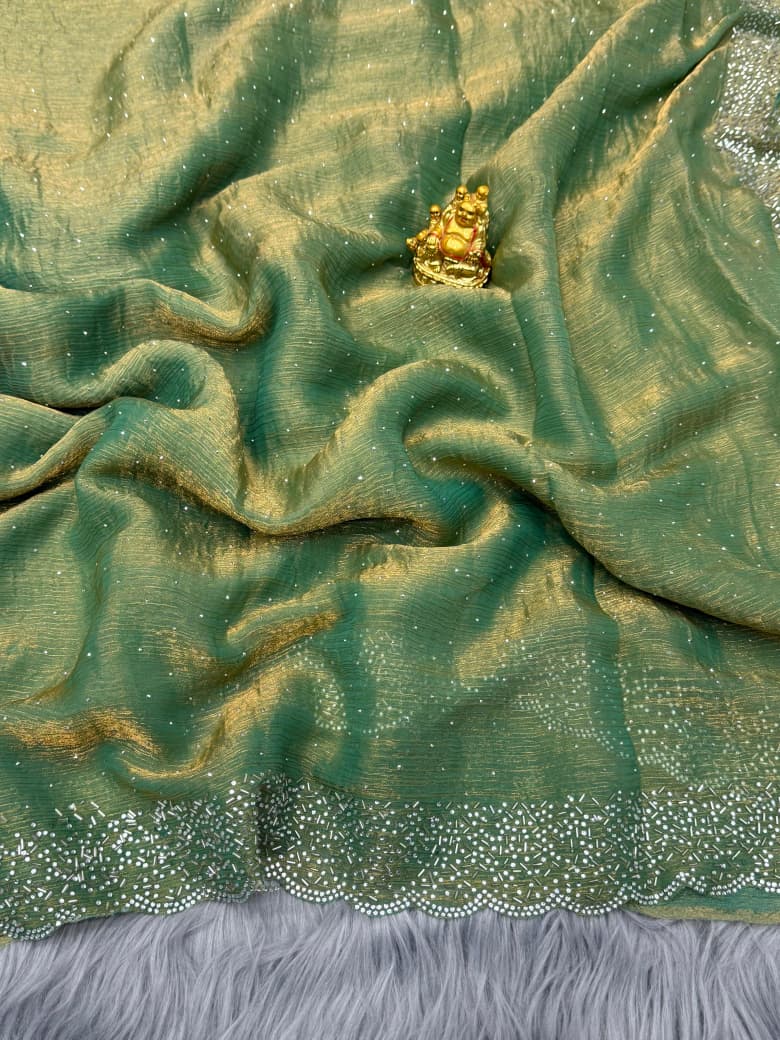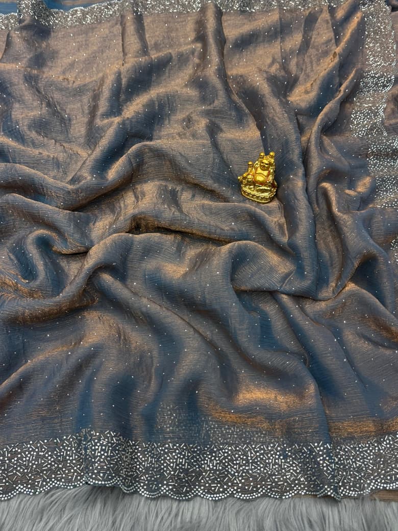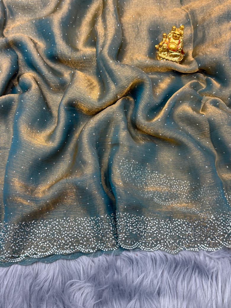 NN-2065 Space silk fabric with jharkhan pp guming work allover saree with tone to tone jharkhan work blouse