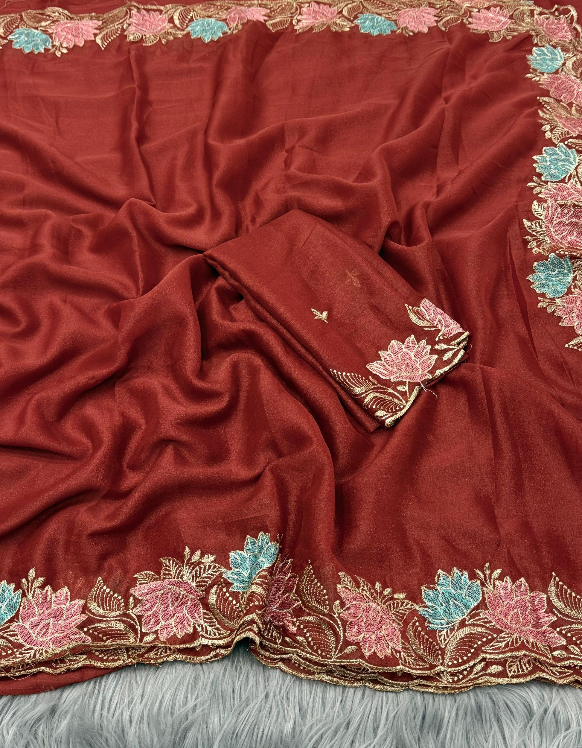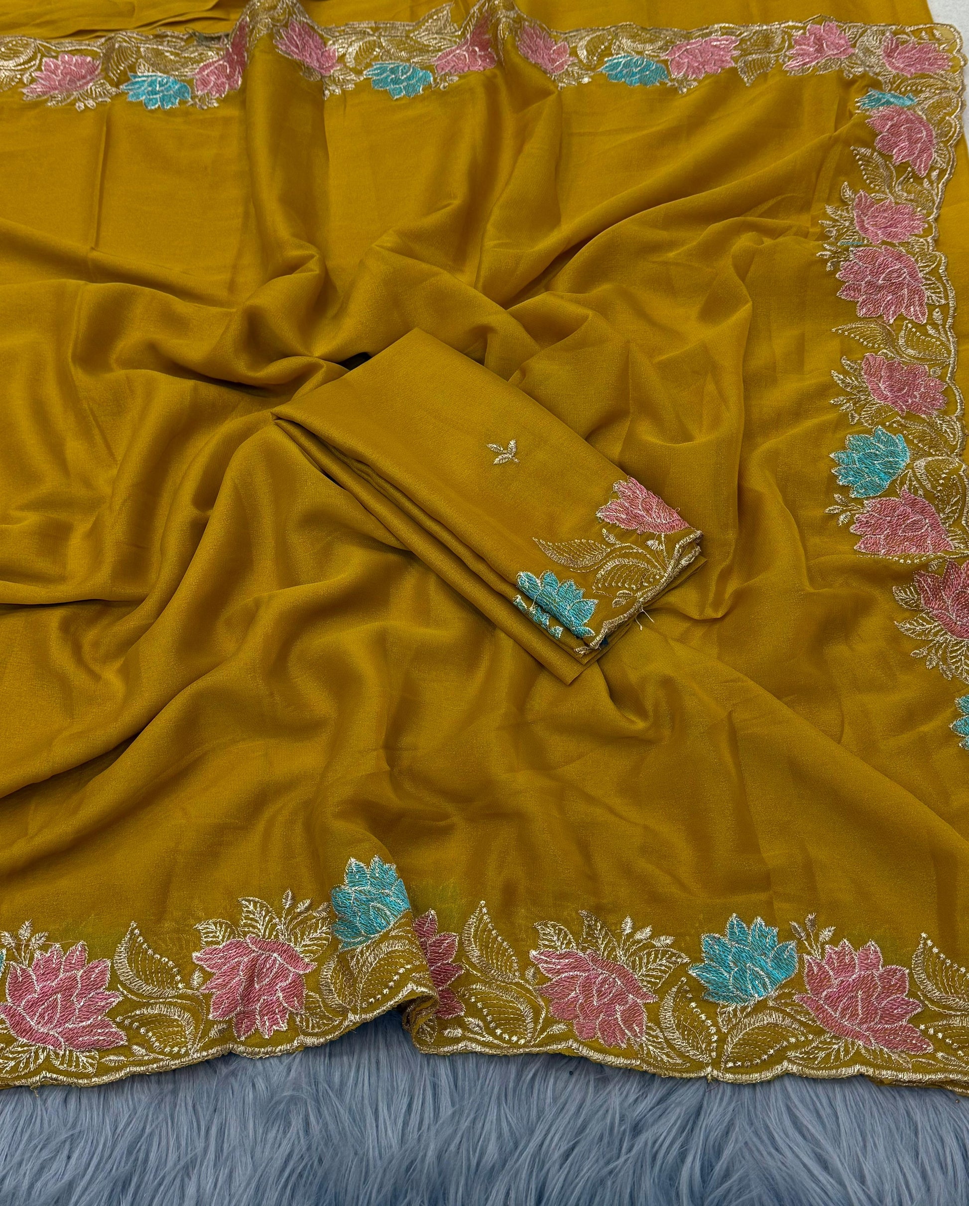 NN-2085 Star georgette fabric with beautiful embroidary c-pallu work with star georgett fabric with contrast embroidary work