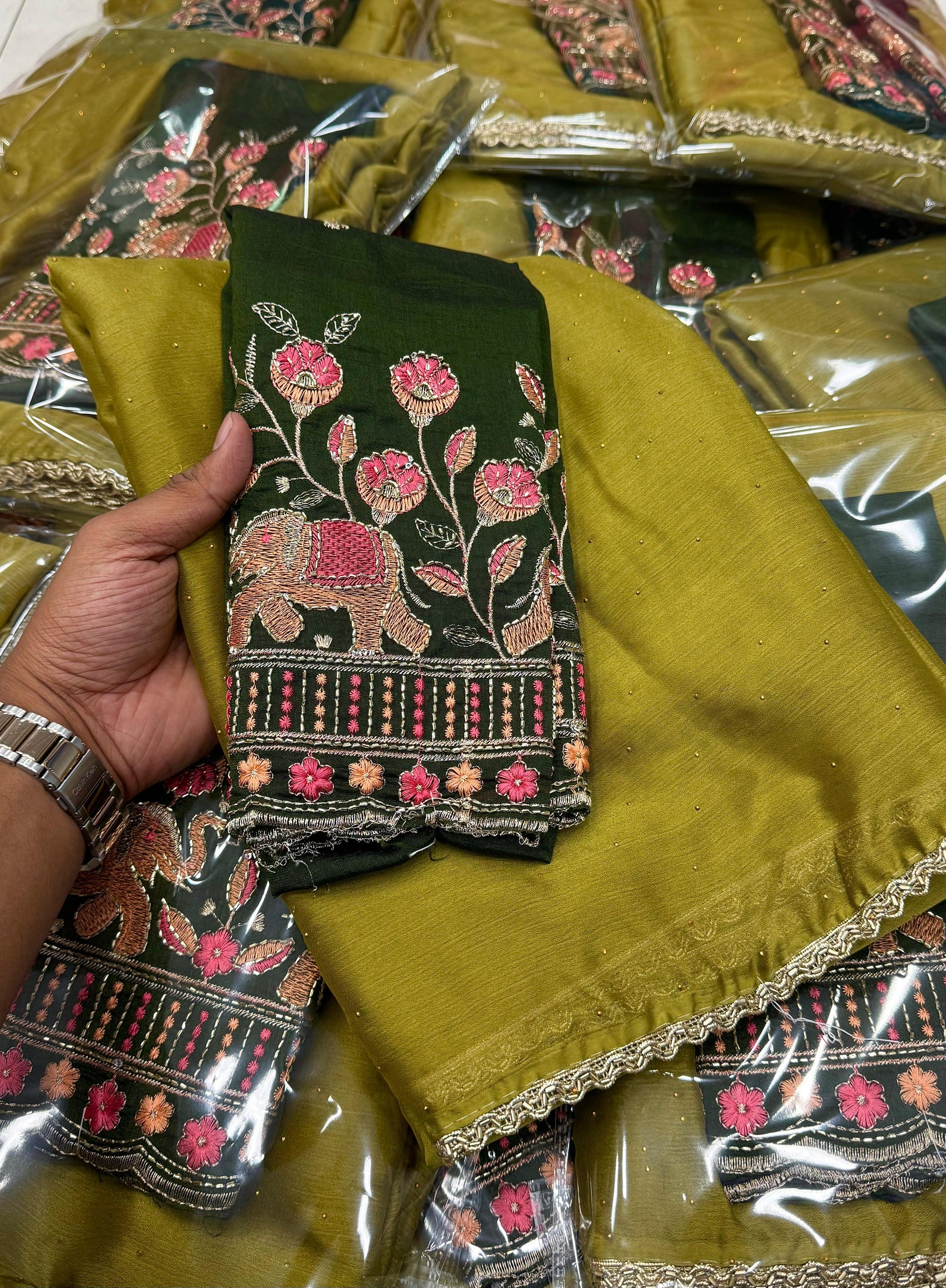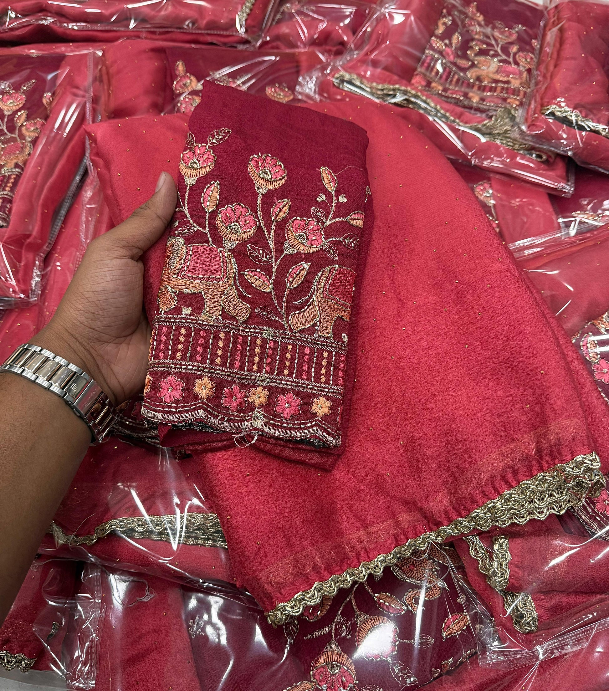 NN-2087 Moss chiffon fabric with chatni work allover saree with beautiful work border with contrast heavy handwork blouse