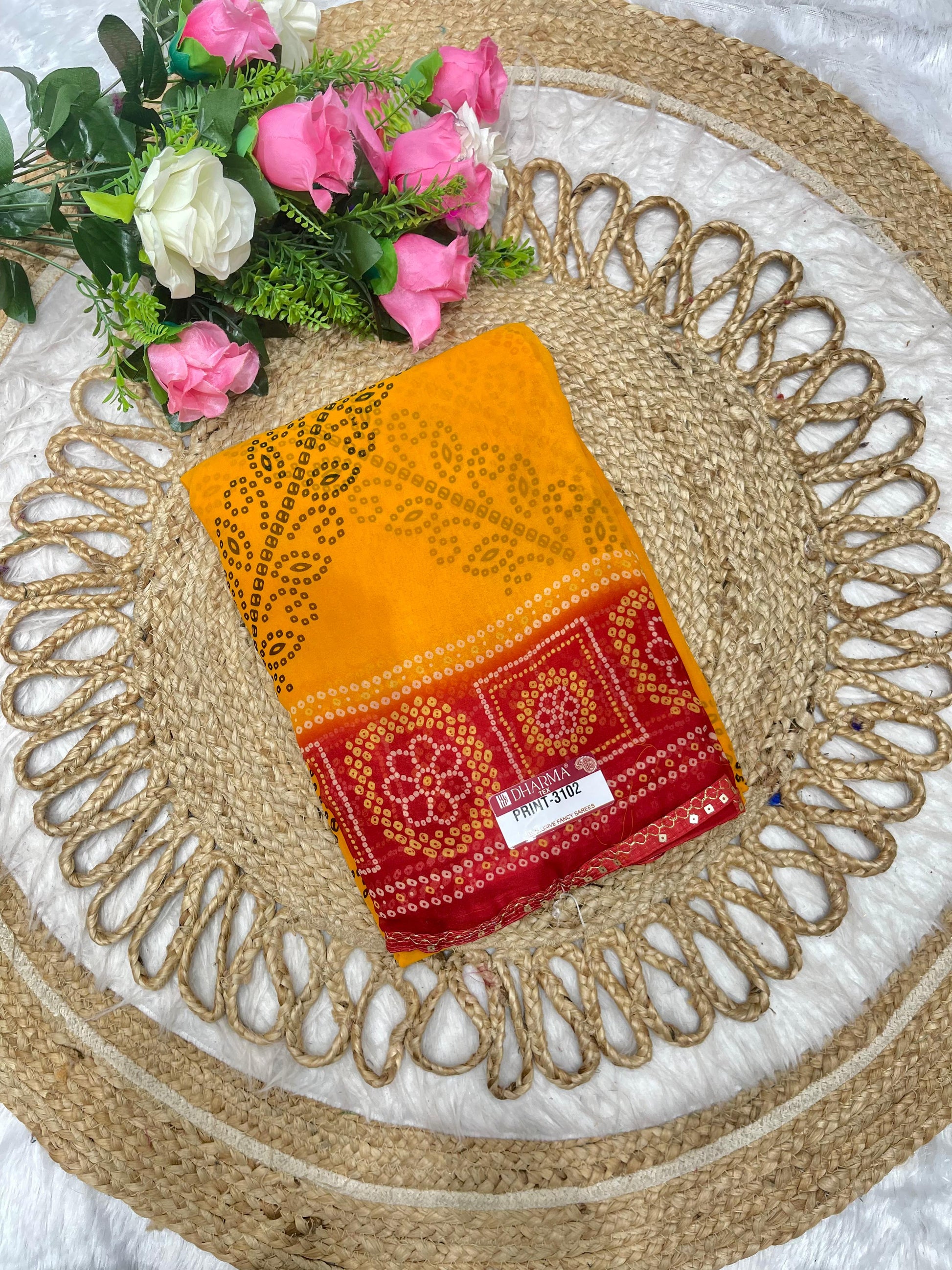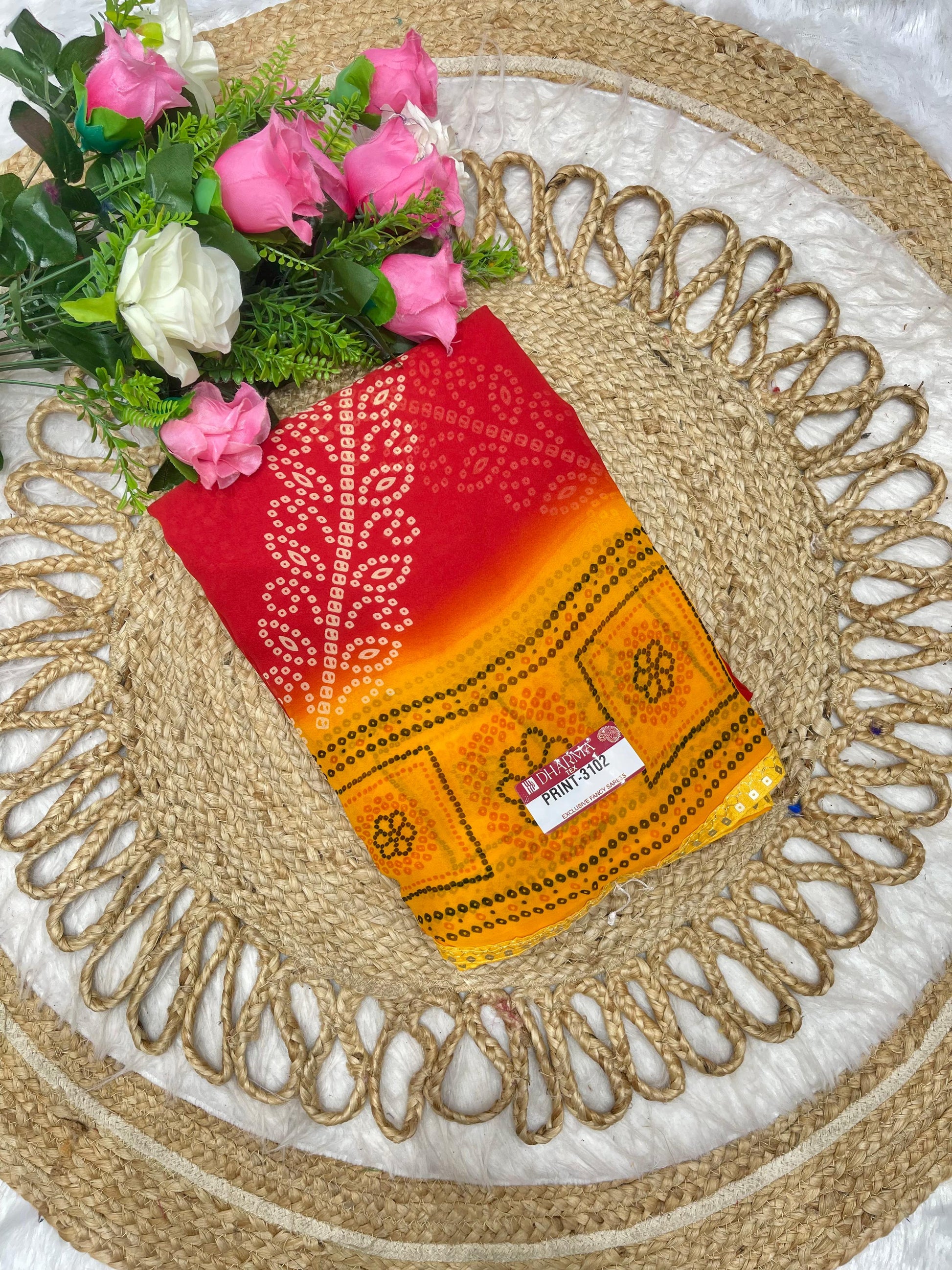 PRINT-3102 HEAVY WEIGHTLESS SAREE BEAUTIFUL CHUNRI PRINT WITH SEQUENCE AND PETHA LACE WITH BLOUSE 6.30 MTR CUT