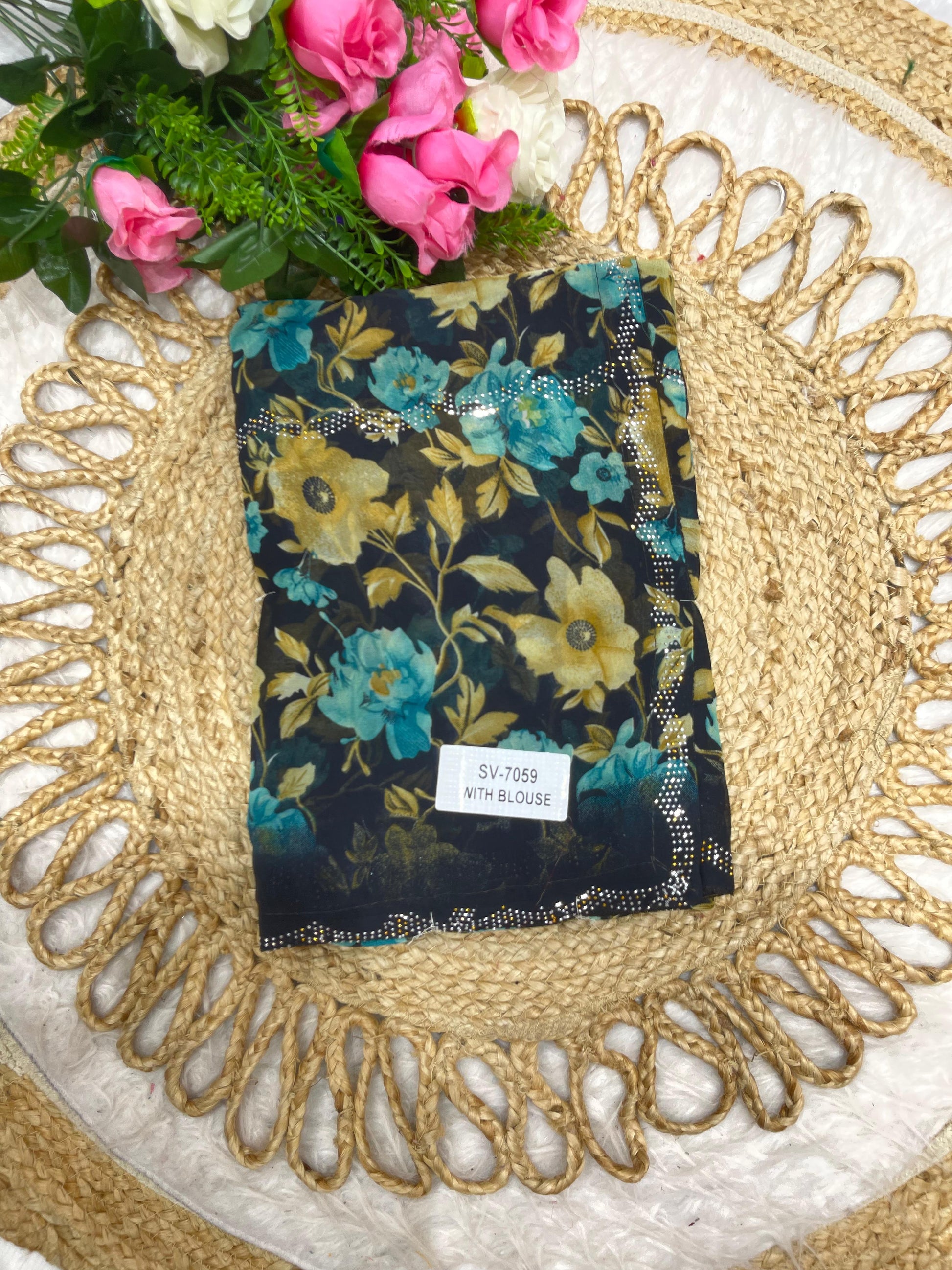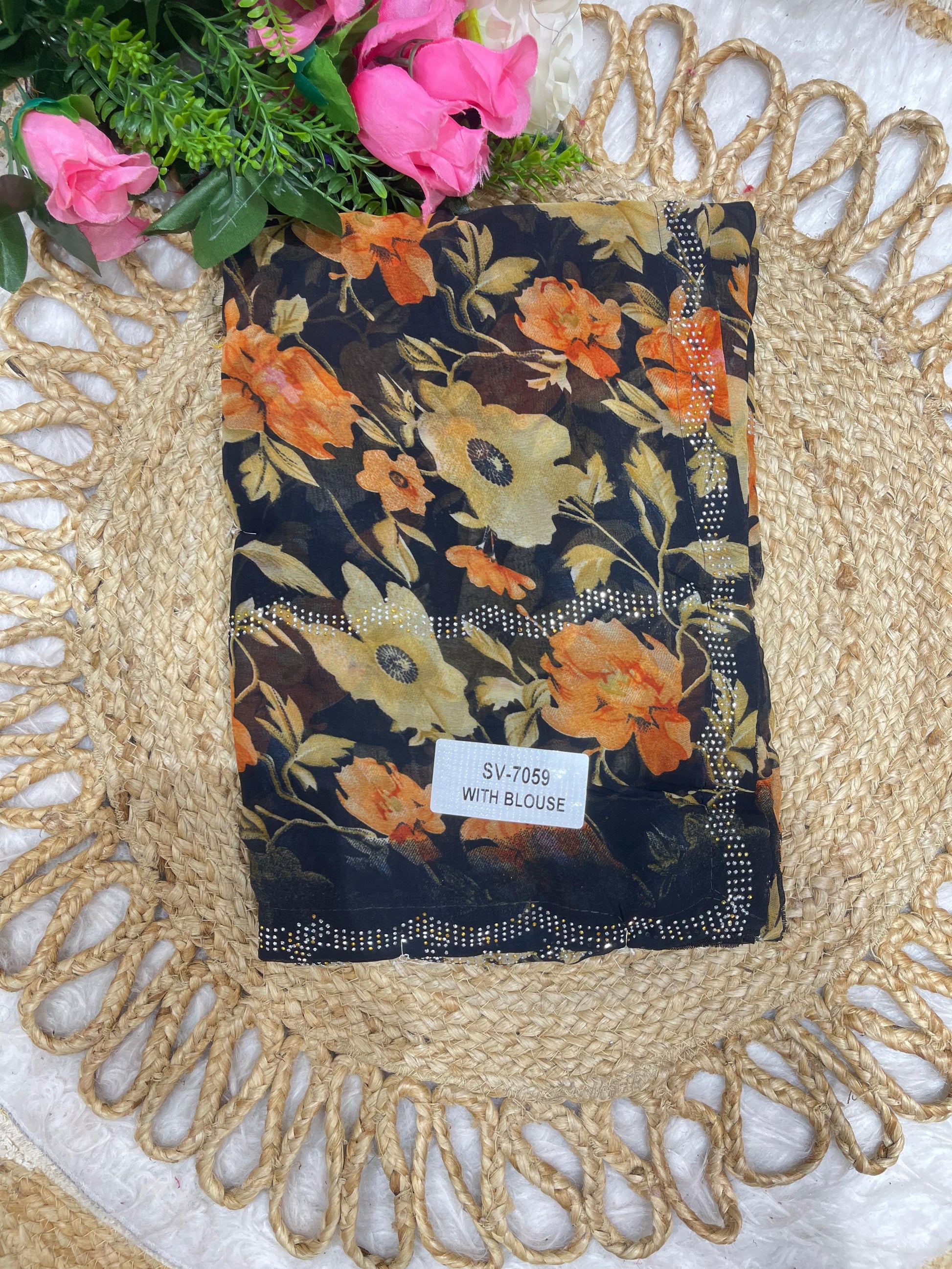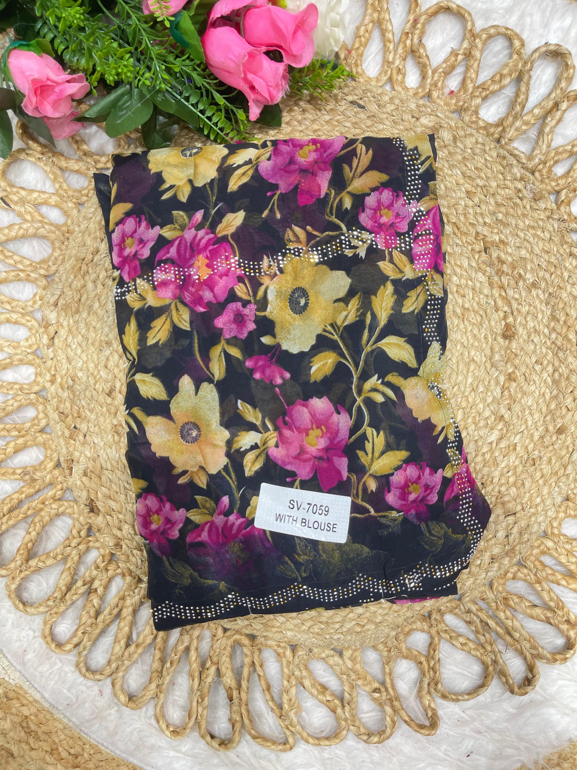 SV-7059 CHIFFON SAREE WITH BLACK COMMON WITH SIROSKI ALL OVER