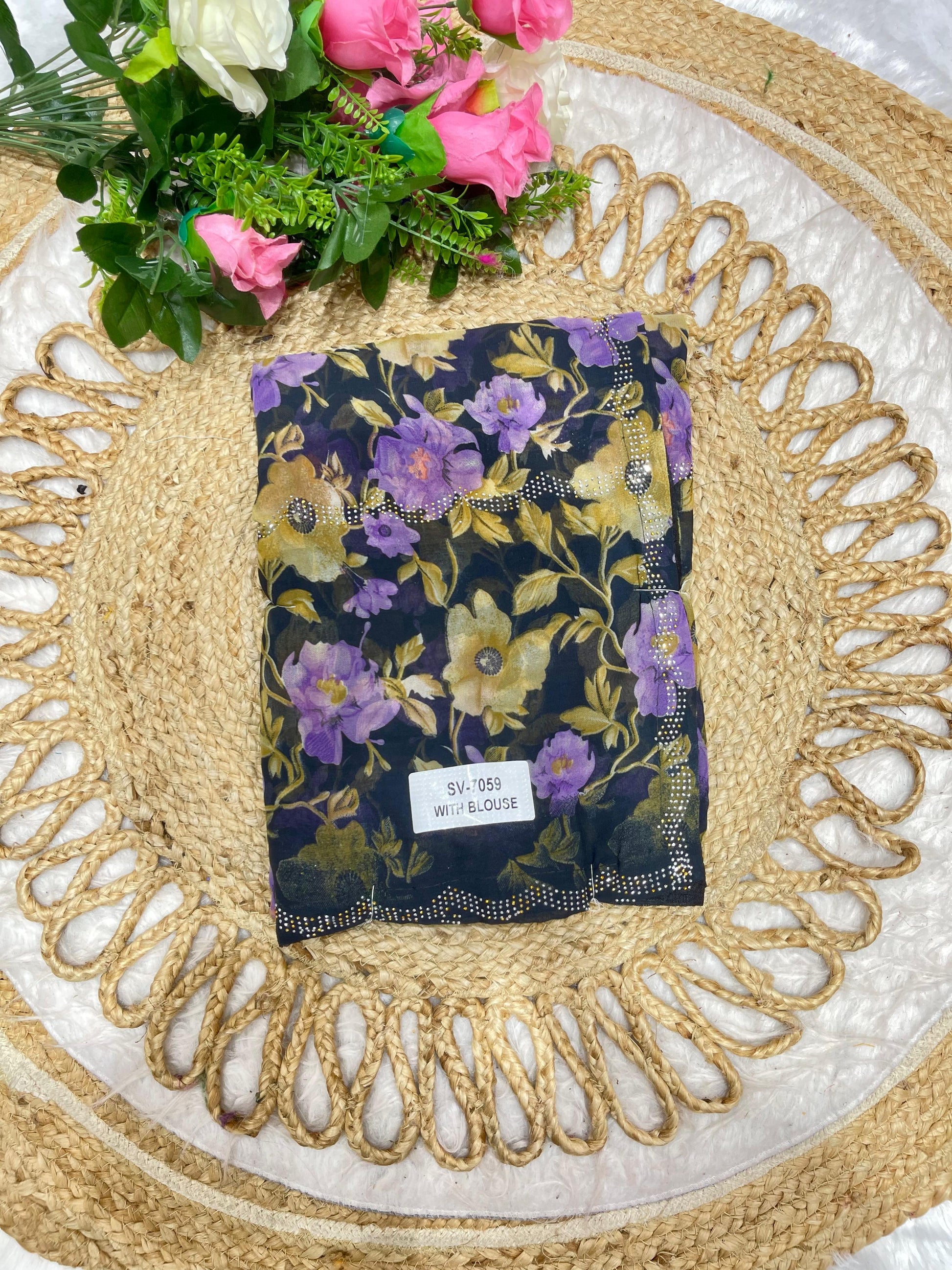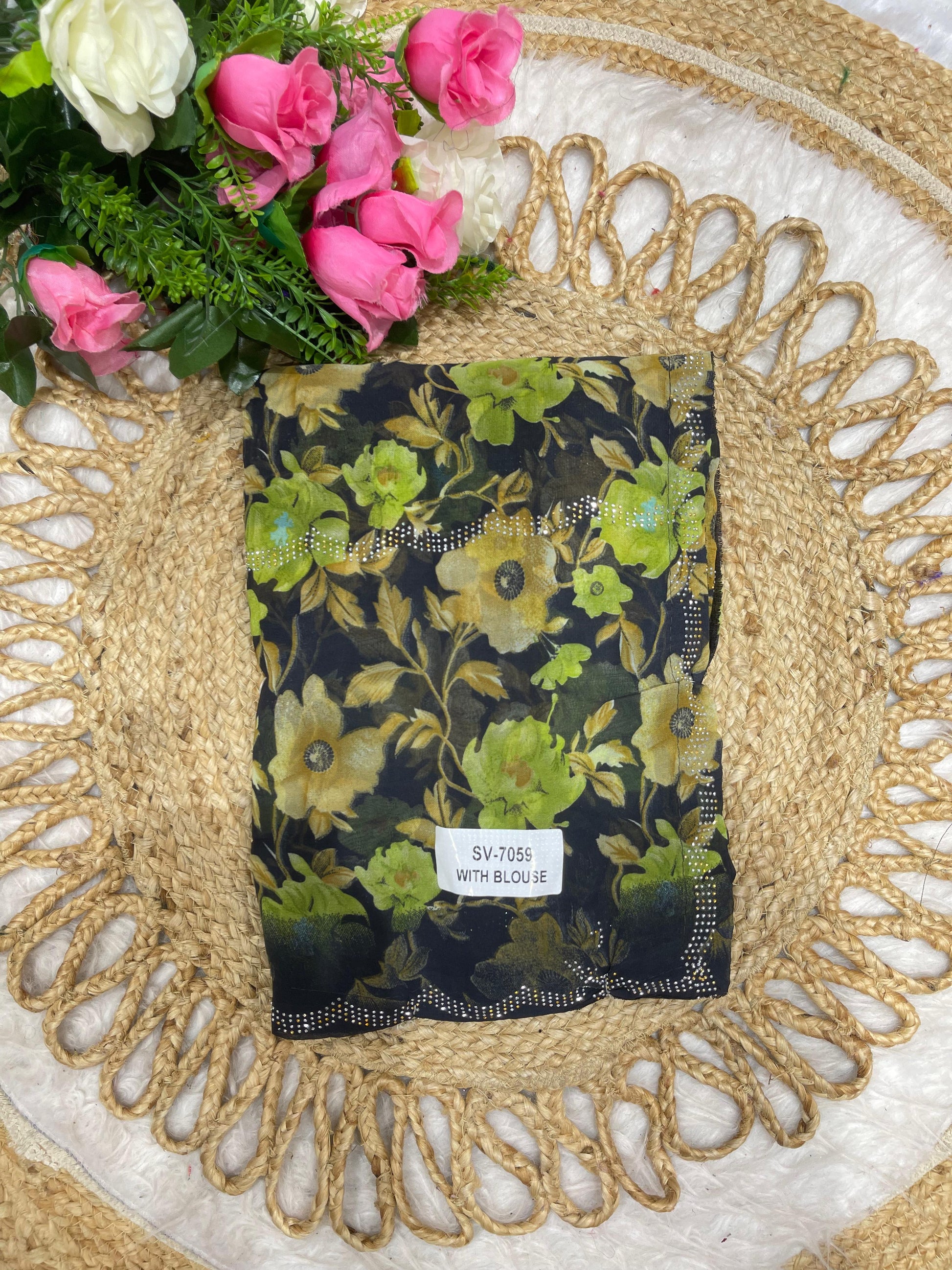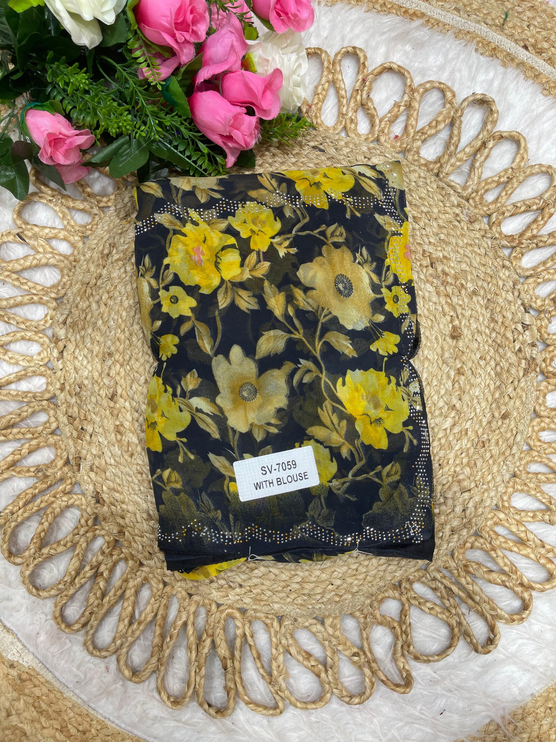 SV-7059 CHIFFON SAREE WITH BLACK COMMON WITH SIROSKI ALL OVER
